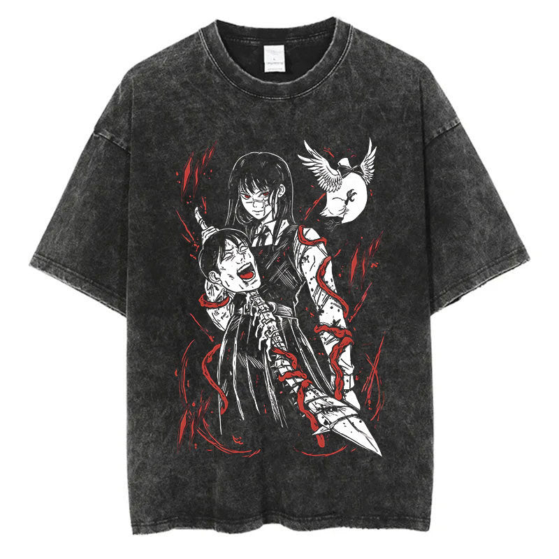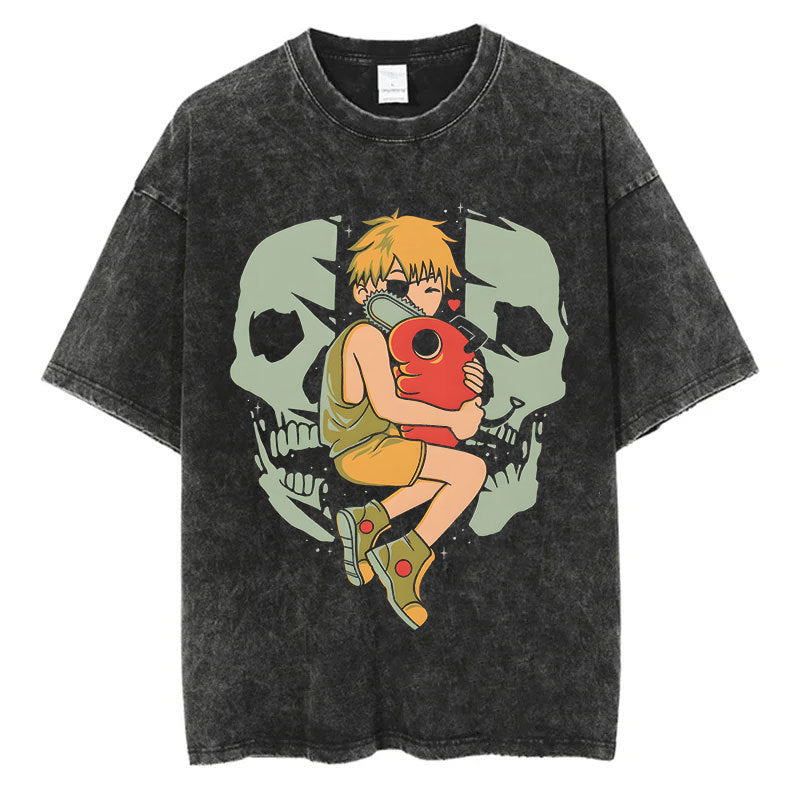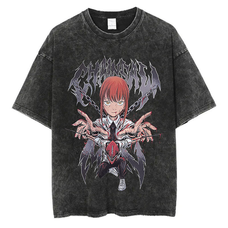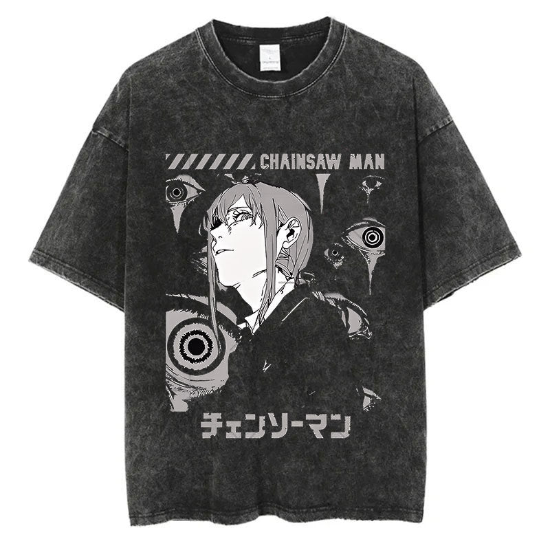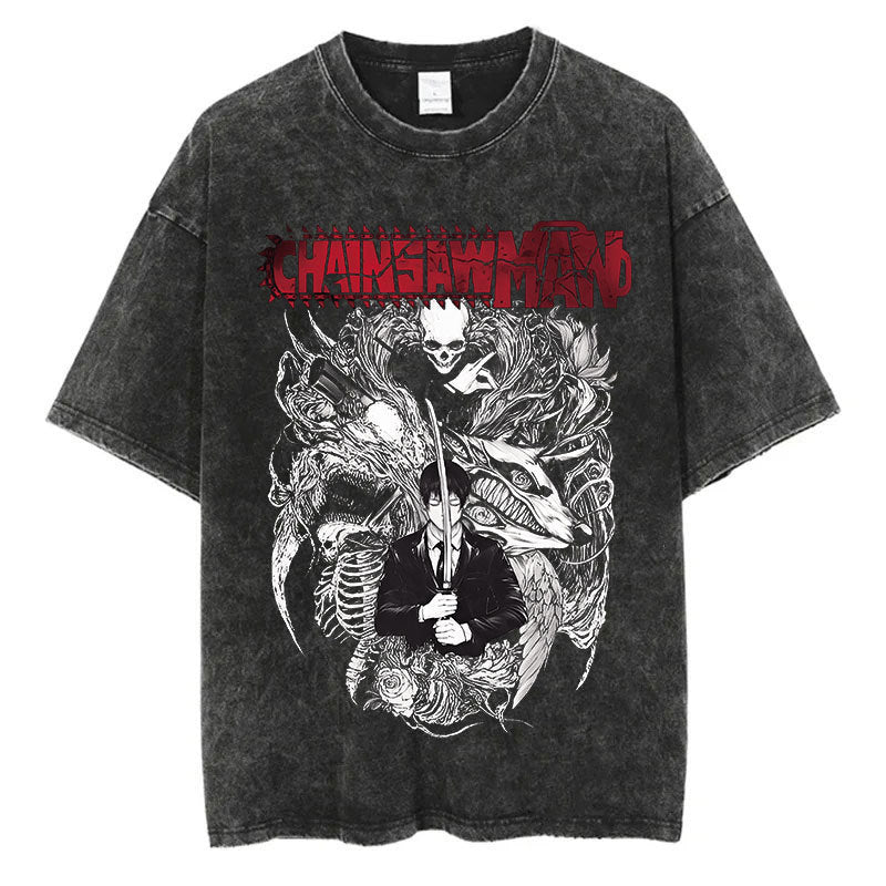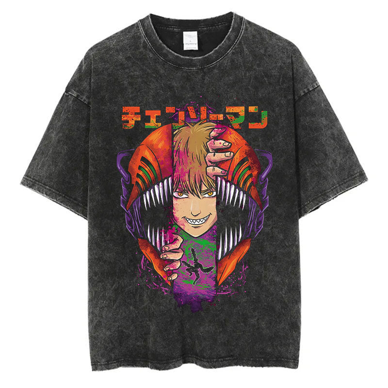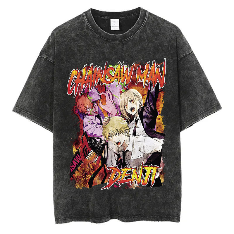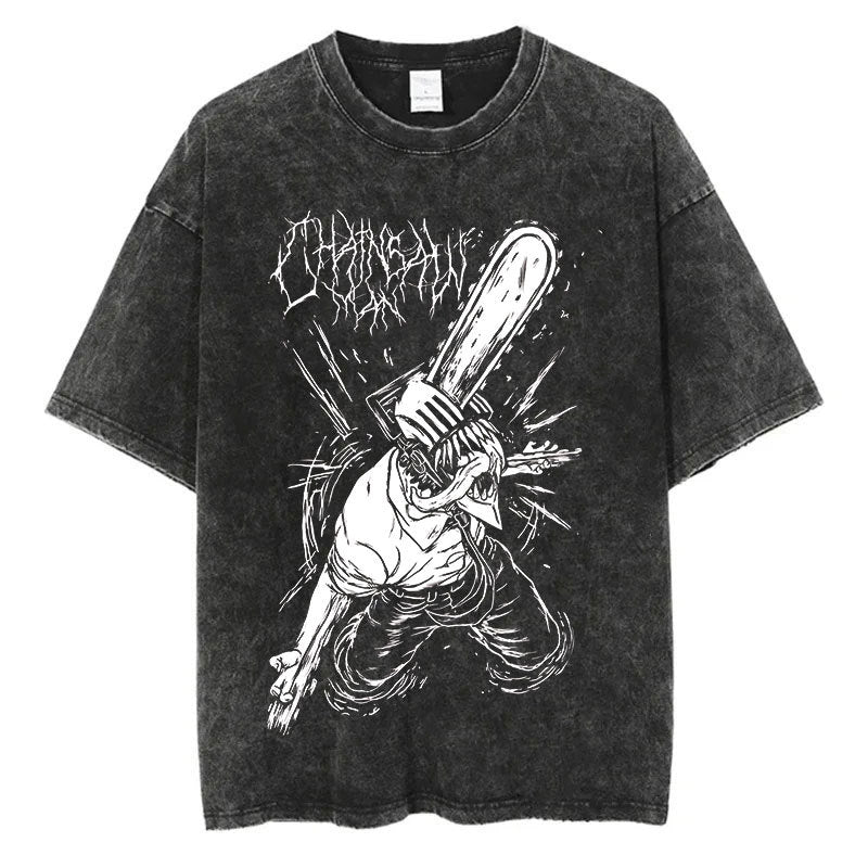 Anime Chainsaw Man Washed TShirt Men Streetwear