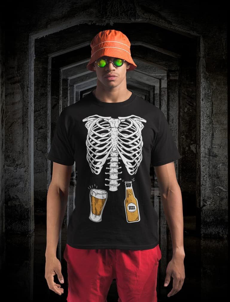 Funny Mens Skeleton Beers in Belly Shirt Ribcage Xray Hallow