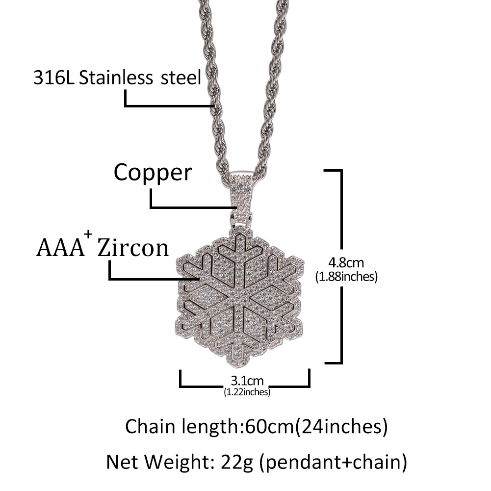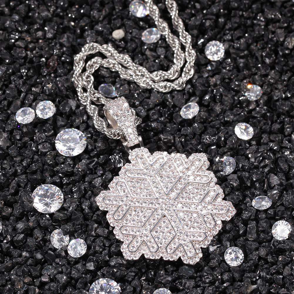 Jewelry Copper Zircon Premium Sense Snowflake Pendant Hip Hop Necklace Snowflake St. Valentine's Spectrum
