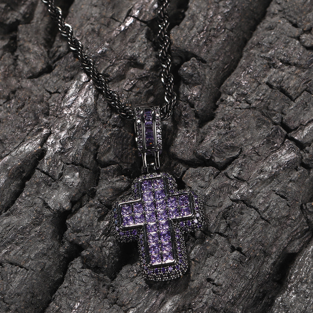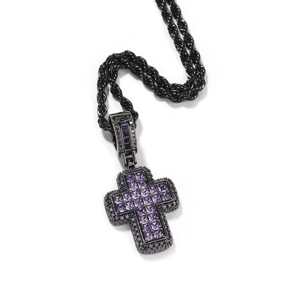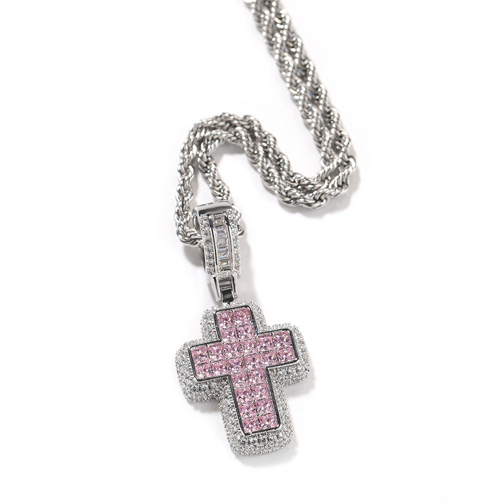Jewelry Fashion T Square Zircon Pink Cross Necklace St. Valentine's Spectrum