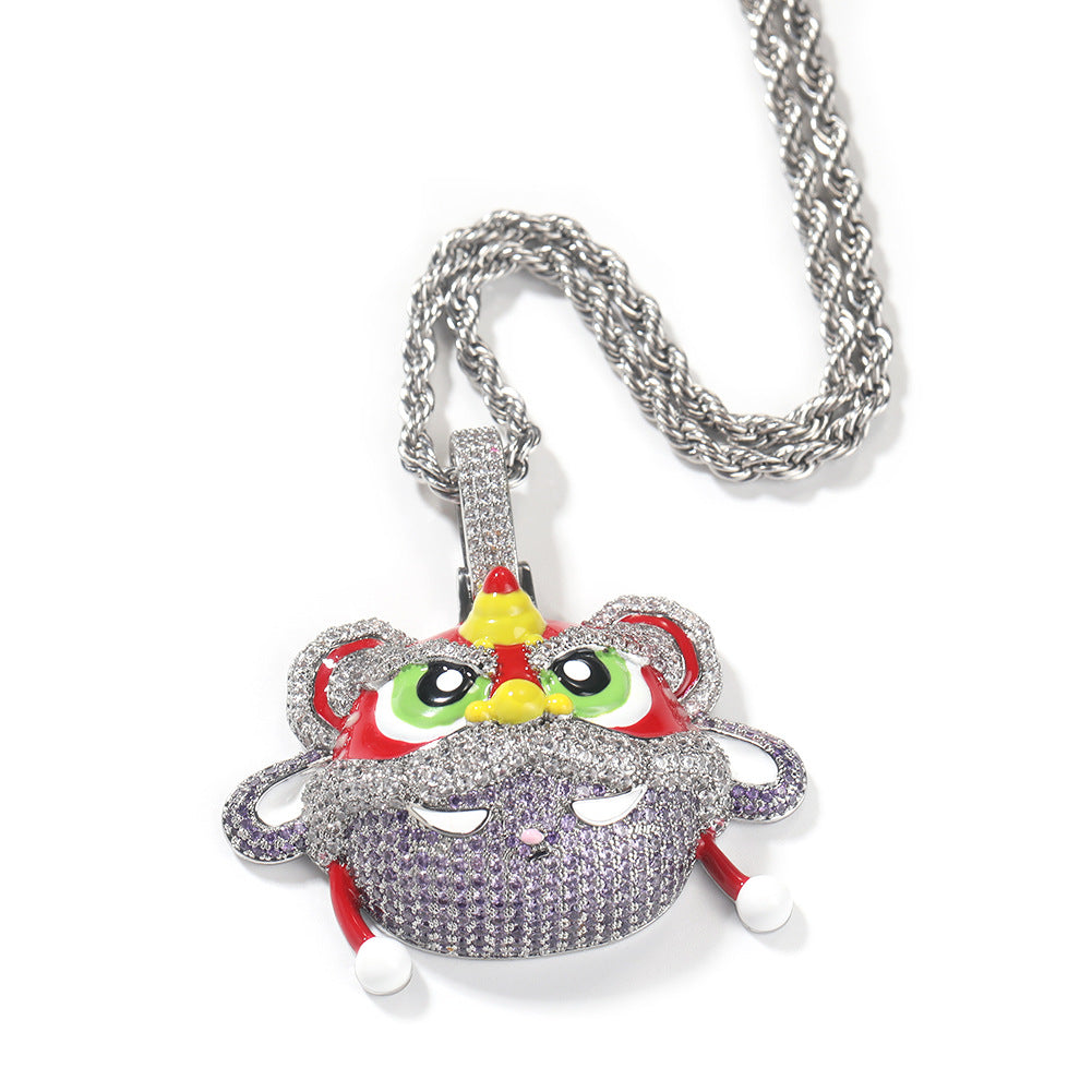 Jewelry Chinese Style Lion Dance Pendant Necklace Personality Diamond Hip Hop Style Lion dance Spectrum Far East