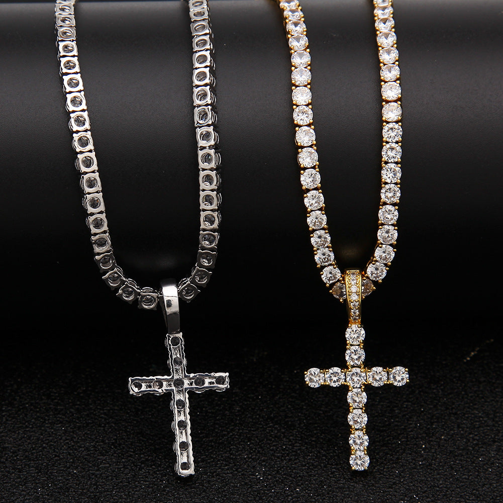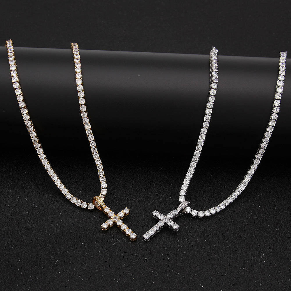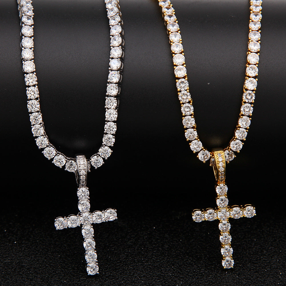 Jewelry Hip Hop Zircon Cross Tennis Street Punk Necklace Spectrum St. Valentine's Crosses