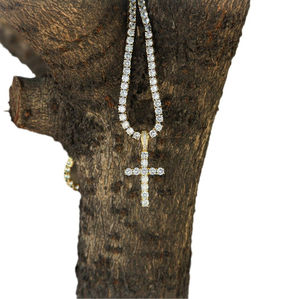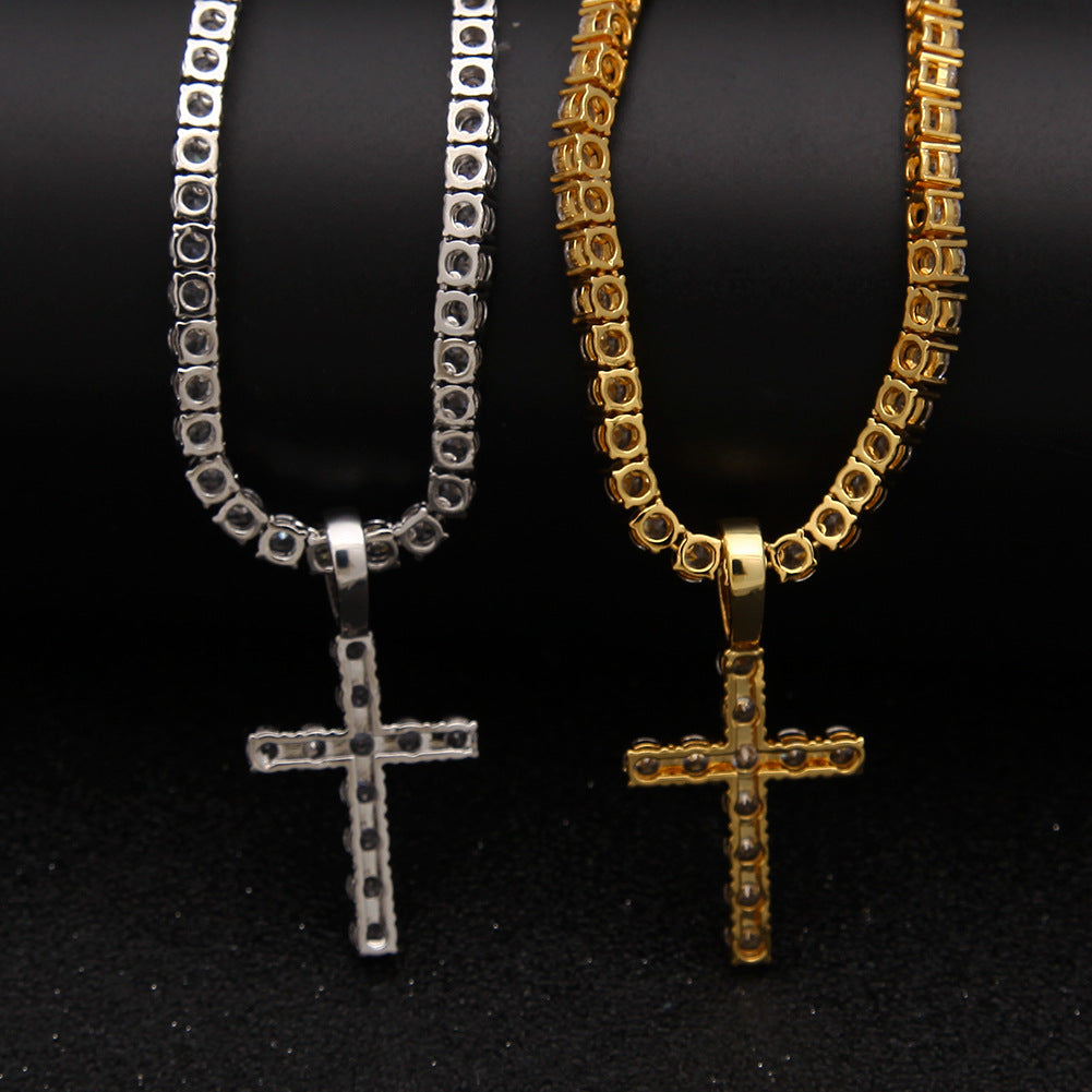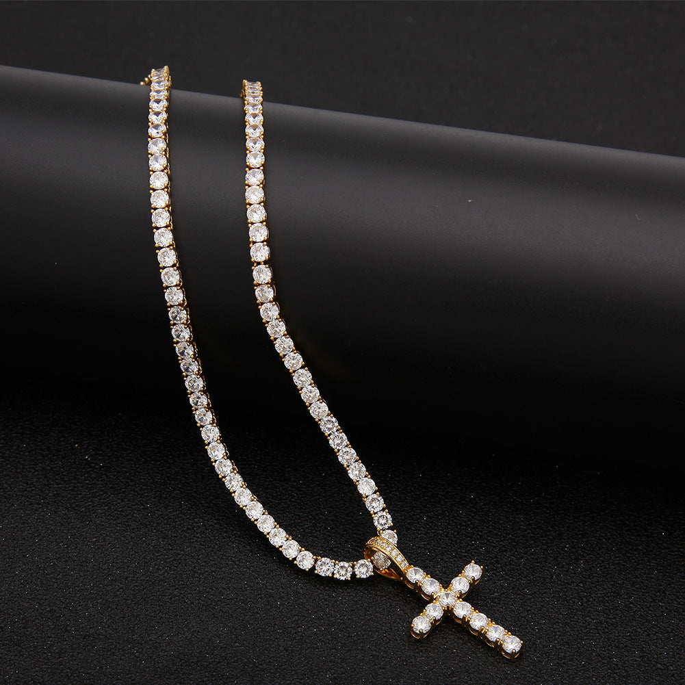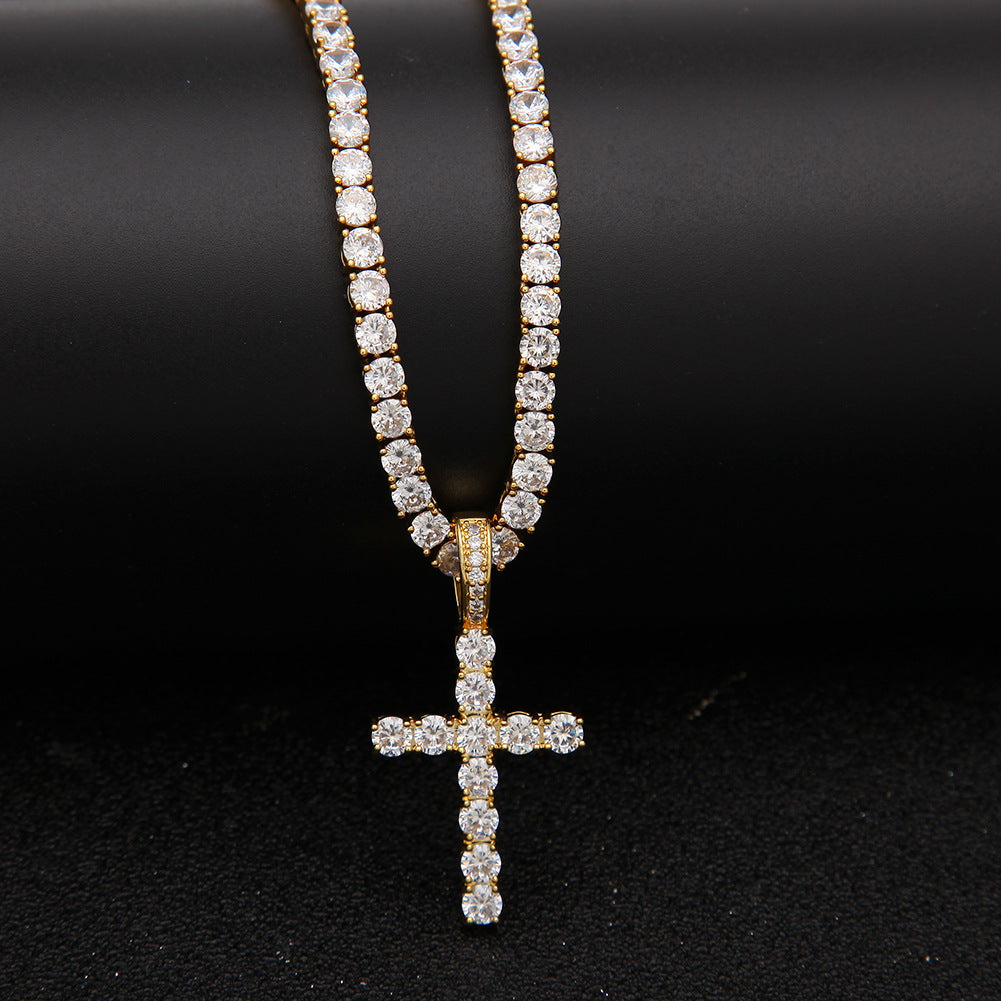 Jewelry Hip Hop Zircon Cross Tennis Street Punk Necklace Spectrum St. Valentine's Crosses