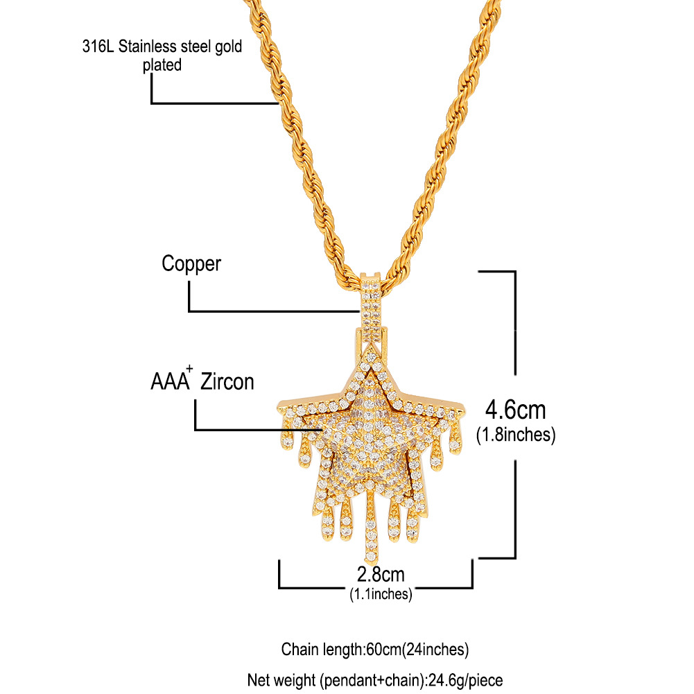 Jewelry Hip Hop Men's Zircon Pentagram Water Drop St. Valentine's Angel Pieces