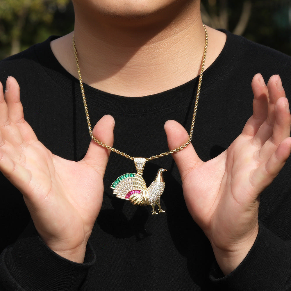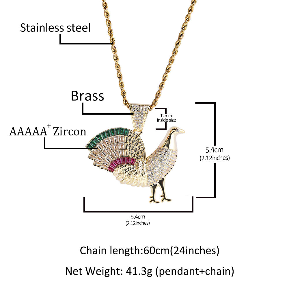 (Gold) Rooster Color Zircon Pendant + 3mm24inch Twist Chain