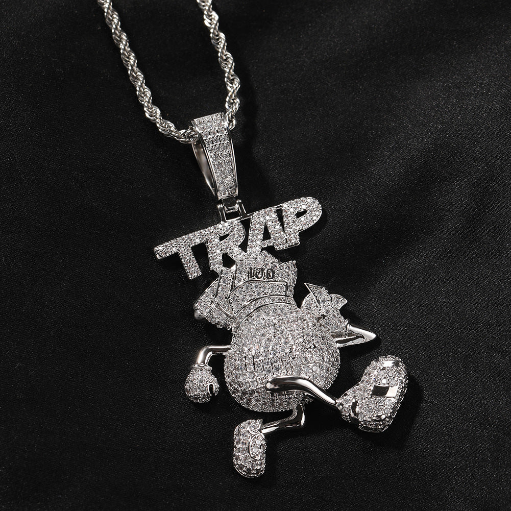 Jewelry Hip Hop TRAP Full Diamond Cartoon Pendant Fashion Necklace Spectrum