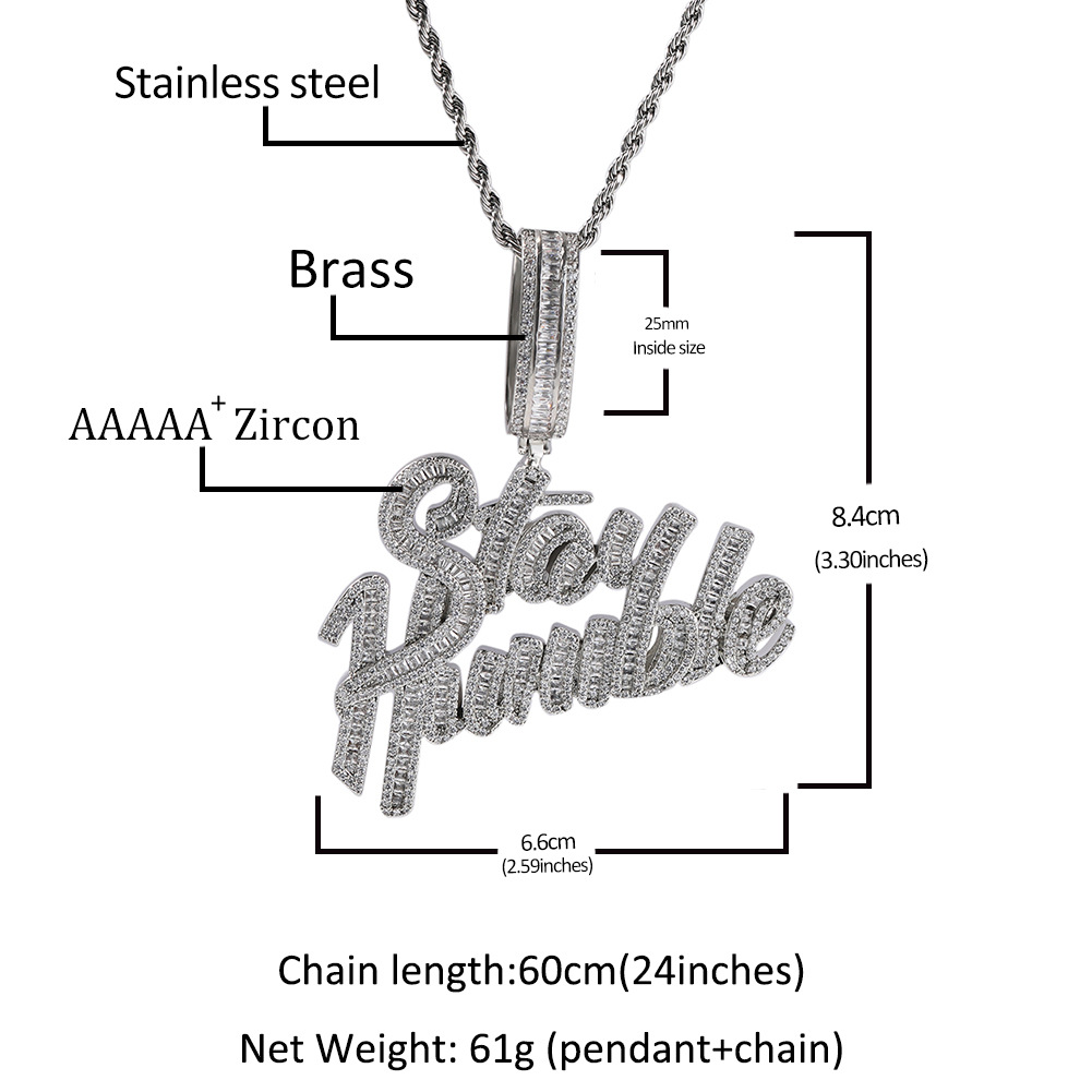 Jewelry Copper Zircon Stay Humble Pendant Hiphop Necklace Royalty Spectrum St. Valentine's Alphabet Pieces