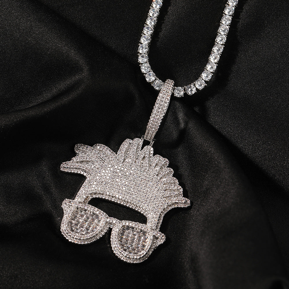 Jewelry Hip Hop Diamond Necklace Trendy Glasses Pendant Spectrum