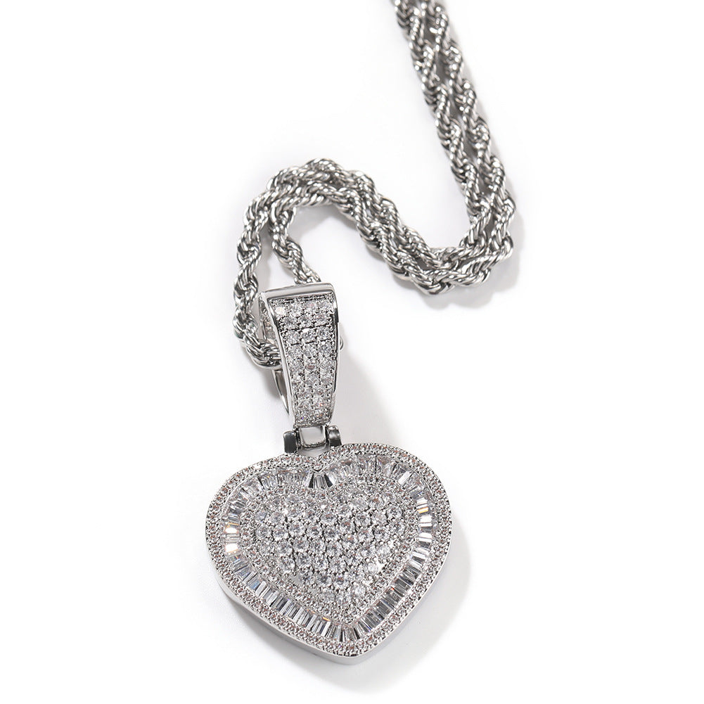 Jewelry copper zircon ins love pendant hiphop necklace St. Valentine's rapper