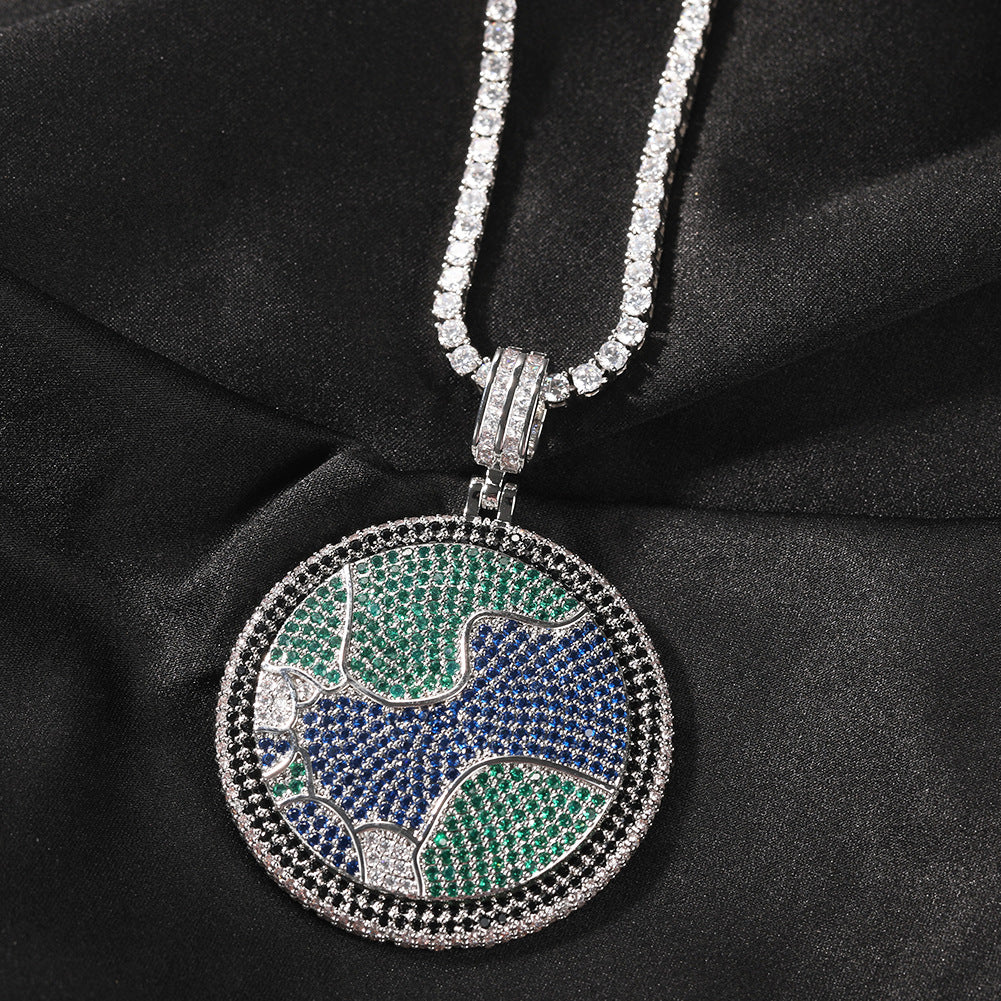 Jewelry Full Diamond Rotatable Earth Pendant Copper Inlaid AAA Zircon Jesus Pieces Royalty