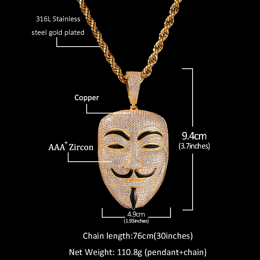 Jewelry Copper Inlaid AAA Zircon Smiley Mask Pendant Hip Hop Jesus Pieces Spectrum