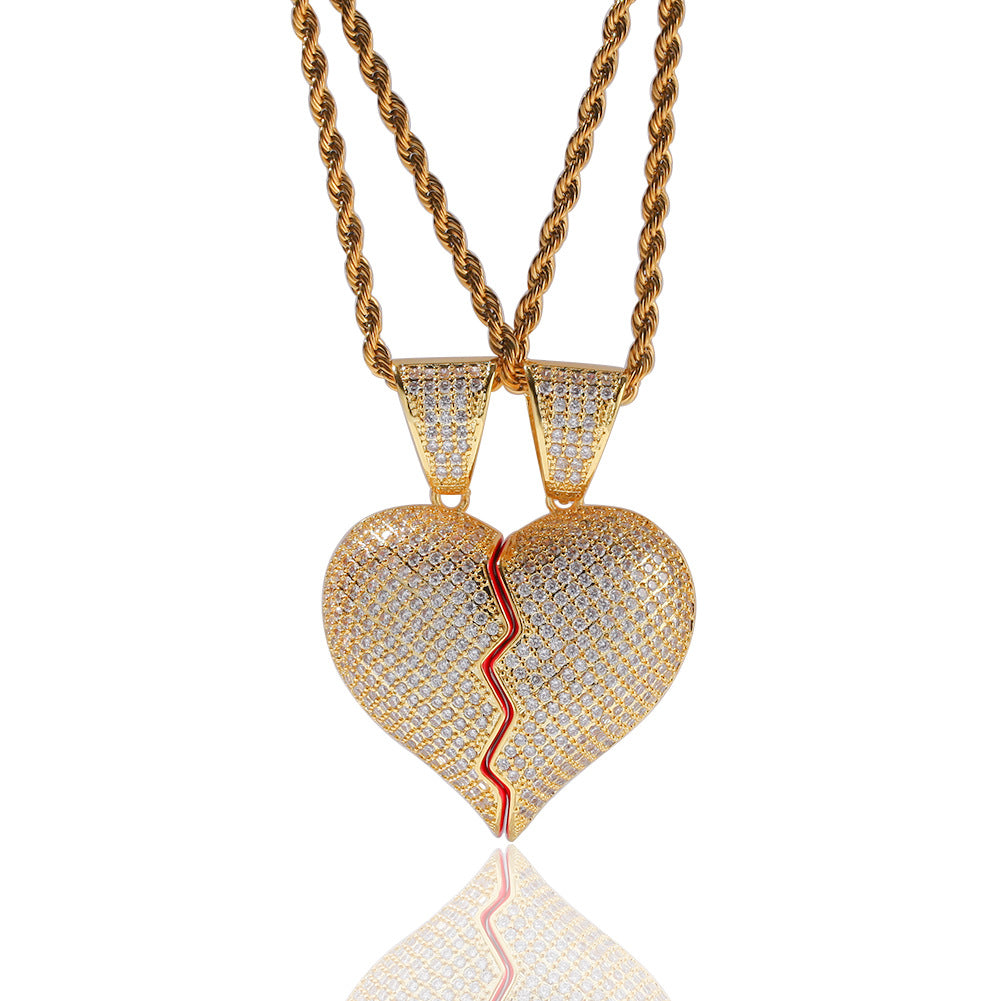 Jewelry Two Halves Heartbreak Combination Pendant Copper Inlaid Zircon St. Valentine's Spectrum Angel Pieces