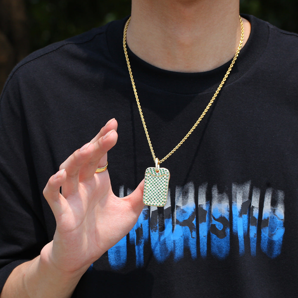 Jewelry Summer Heavy Industry Design Green Zircon Square Pendant Royalty Spectrum