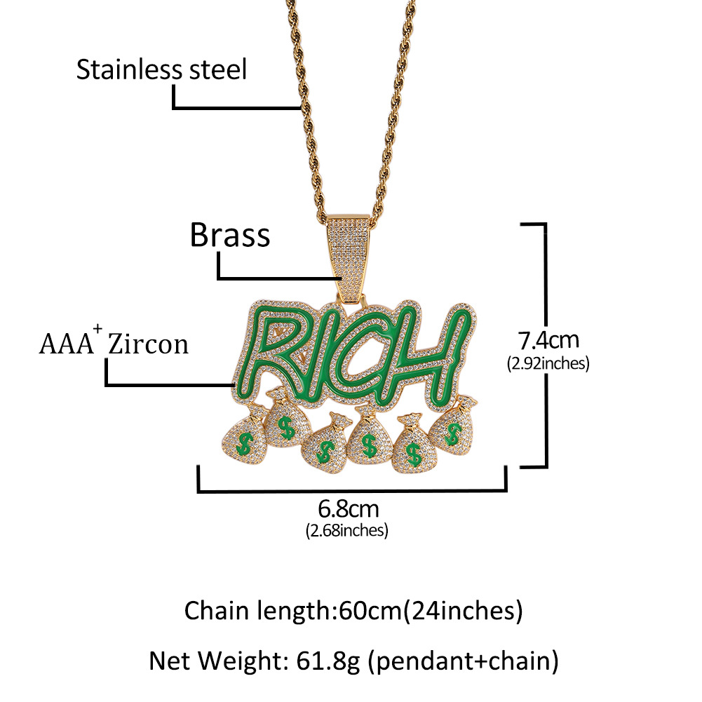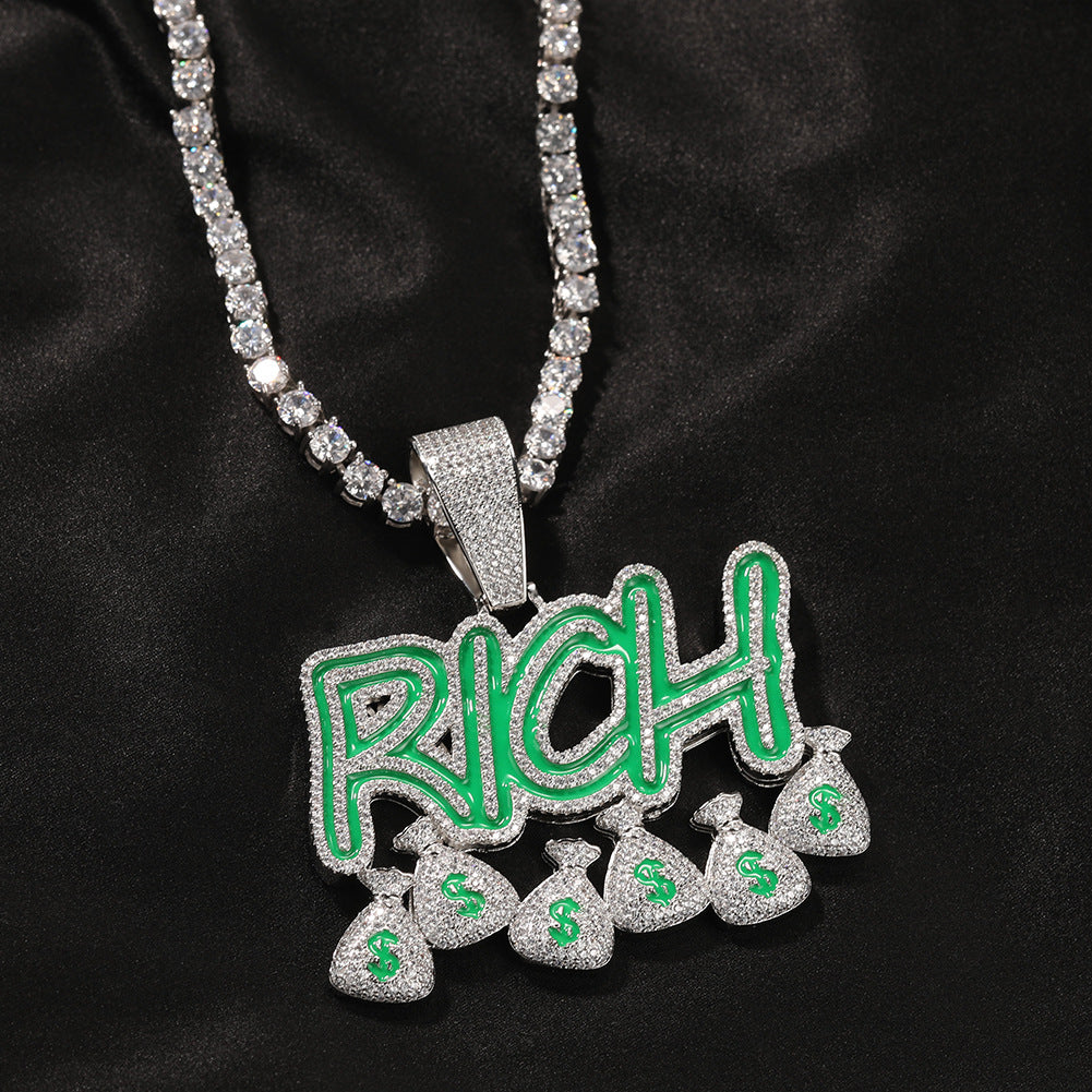 Jewelry RICH Money Bag Letter Pendant Oil Dripping Alphabet Pieces Night light Spectrum