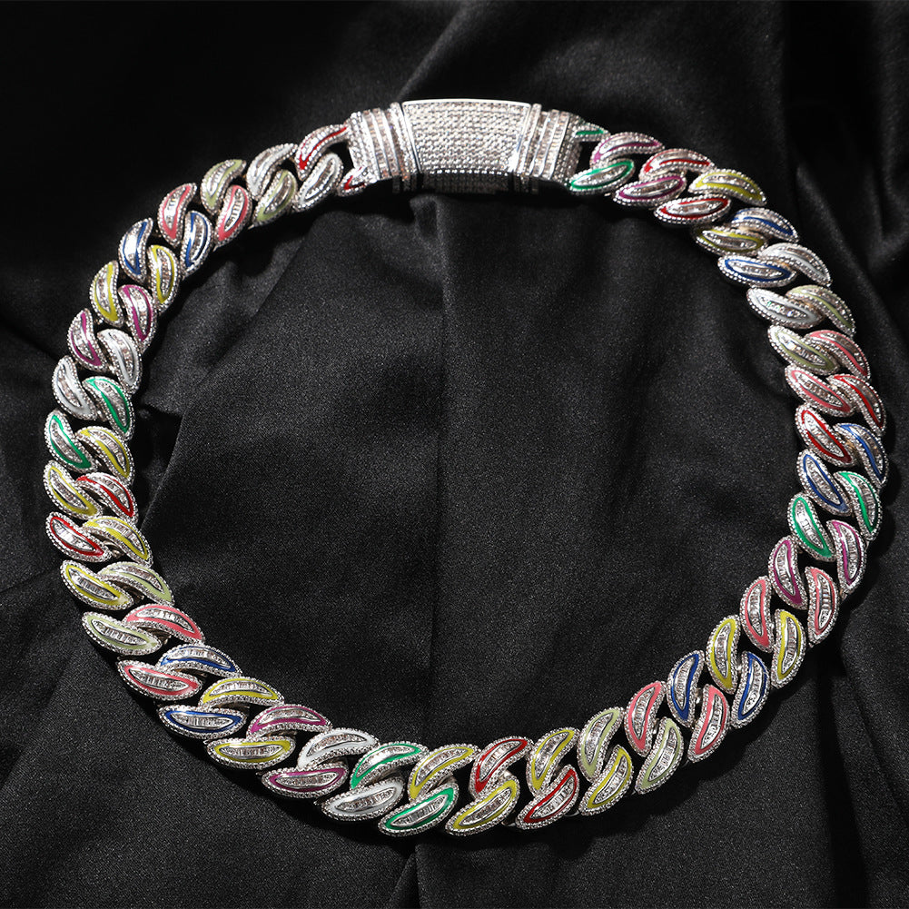 Jewelry 20mm Colorful Luminous Cuban Chain Copper with Zircon Spectrum St. Valentine's