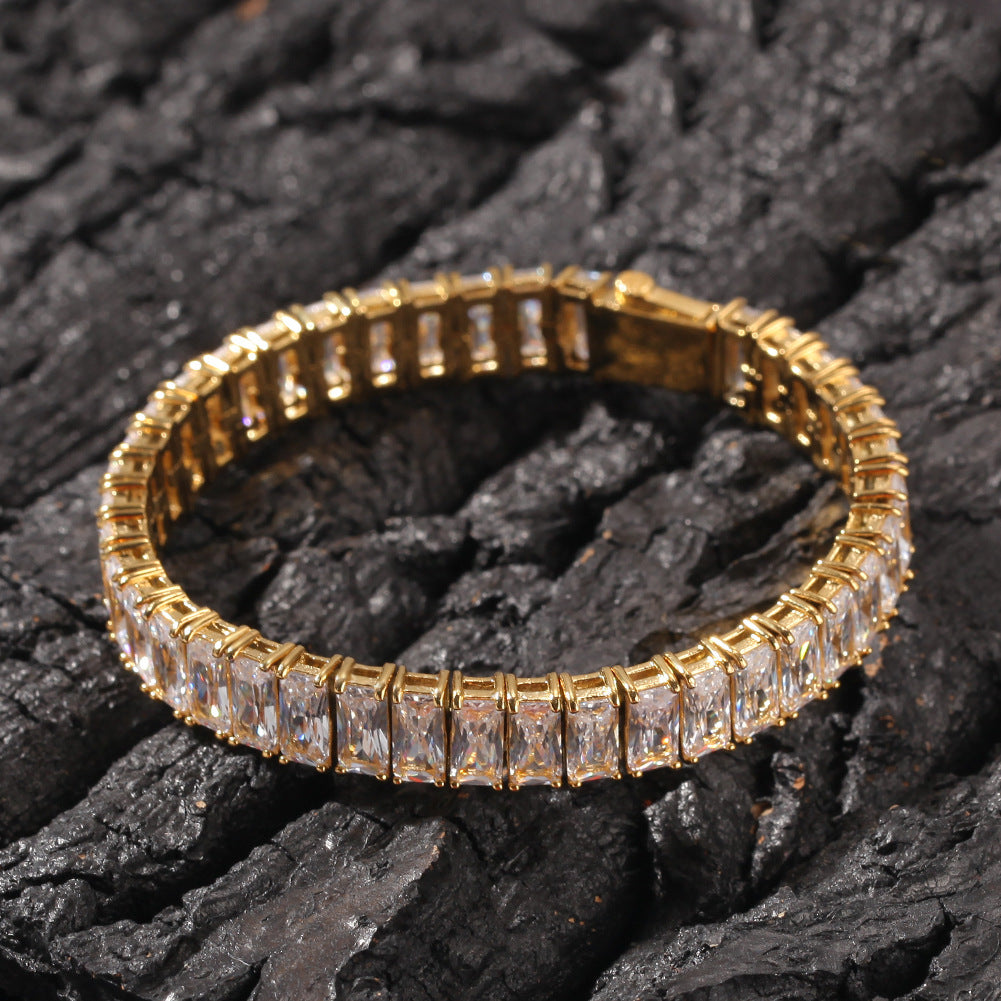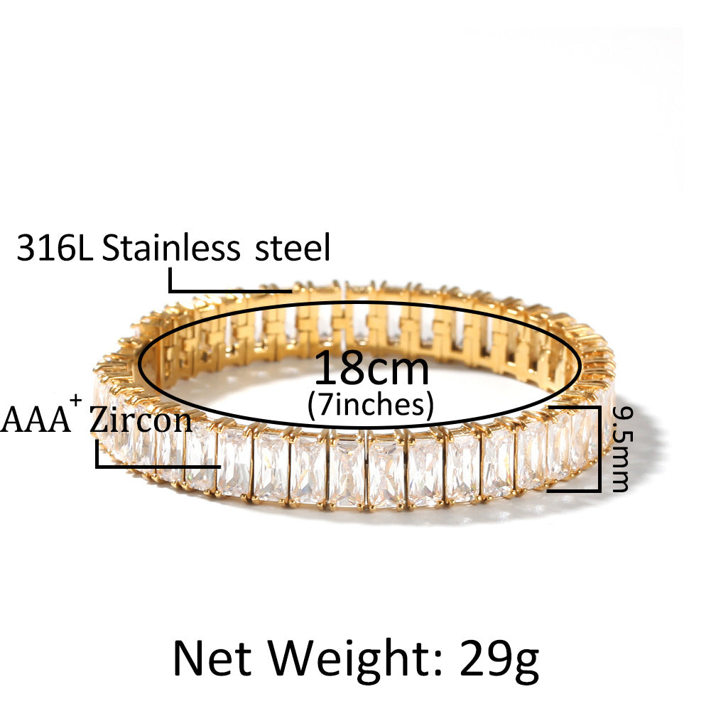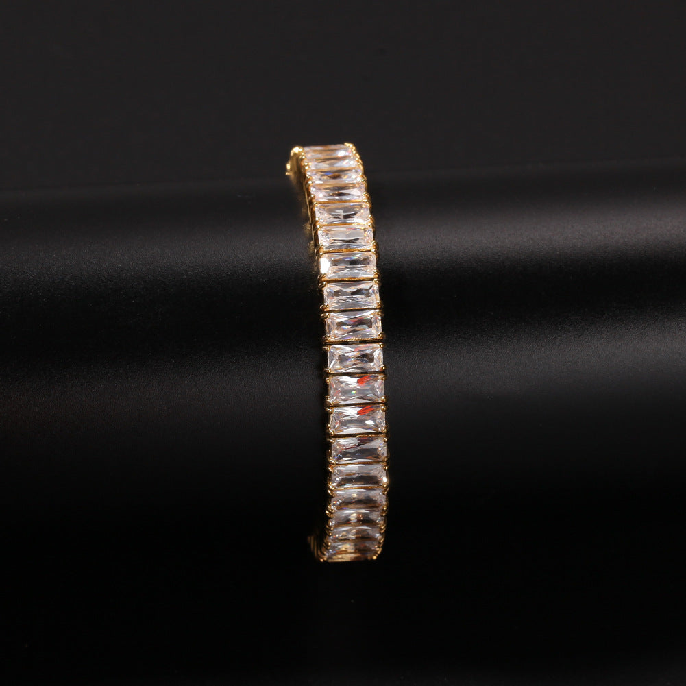 Bracelet Gold Plated Square Zircon Stainless Steel Bracelet Hip Hop Spectrum St. Valentine's