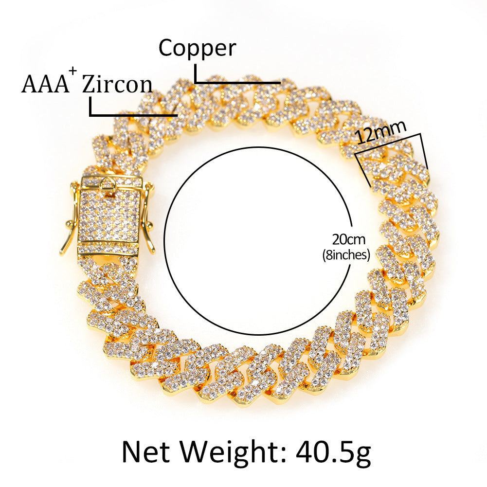 Bracelet Diamond Bracelet 12mm Bar Cuban Chain Royalty Spectrum St. Valentine's