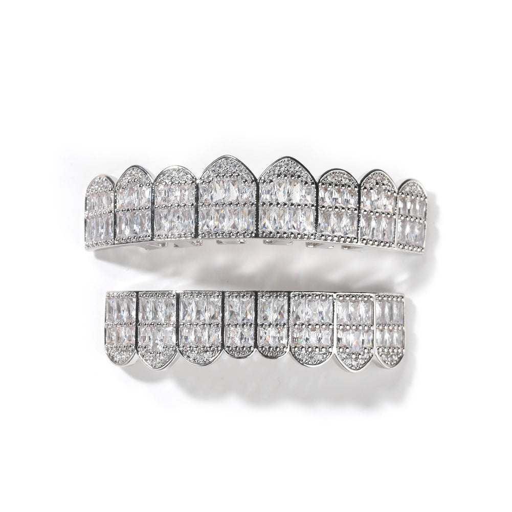 Grillz HIPHOP Real Gold Plating T Square 8 Teeth Zircon Braces Spectrum