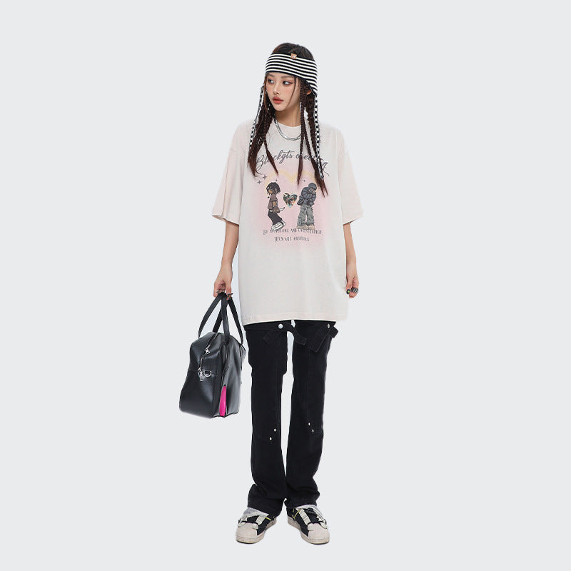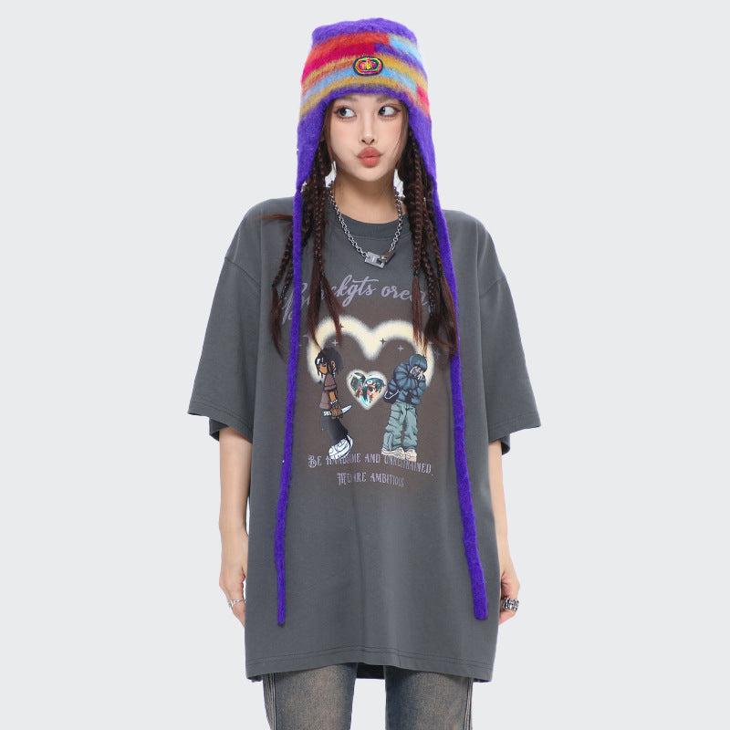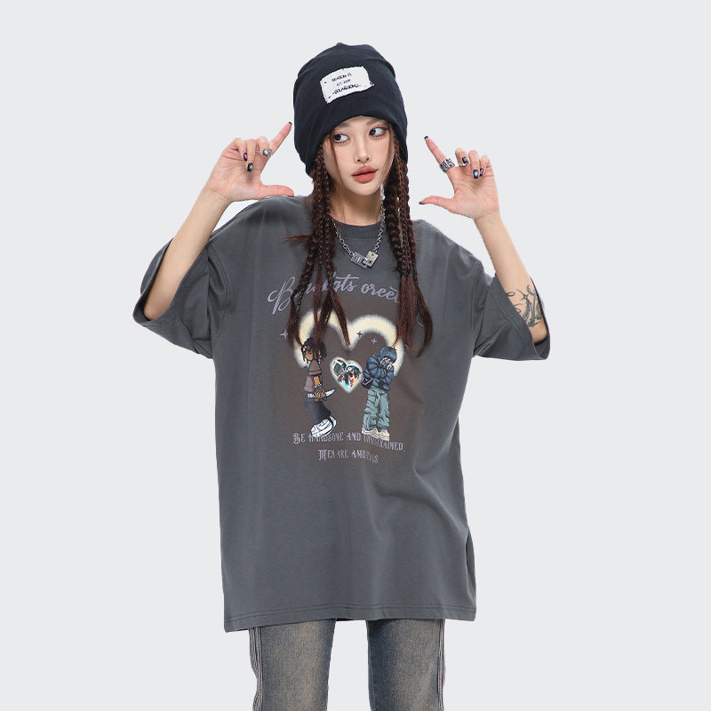 After Prom Shirt Women's Love T-shirt Retro Cartoon Printed Cotton Short Sleeve Men's Loose Ins
