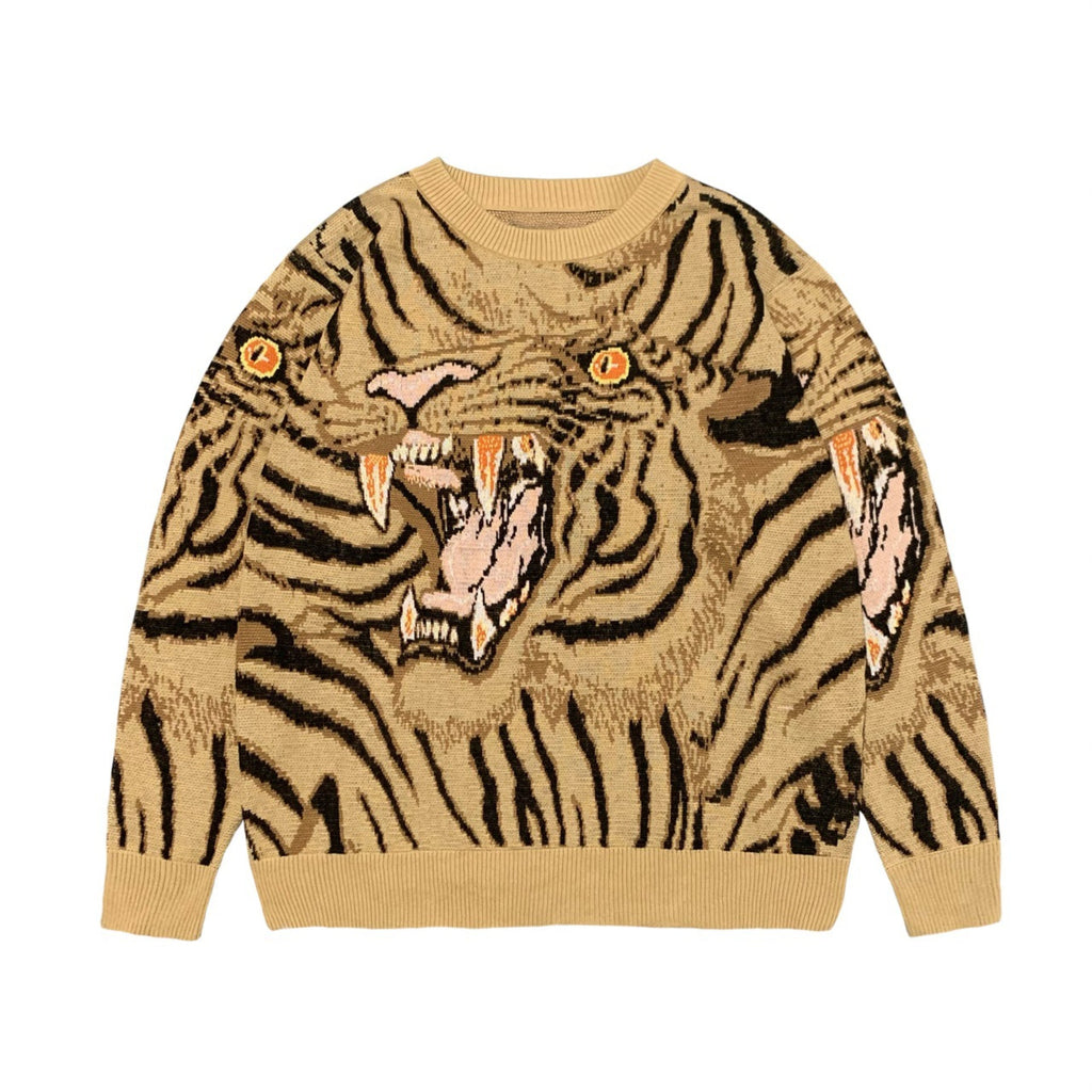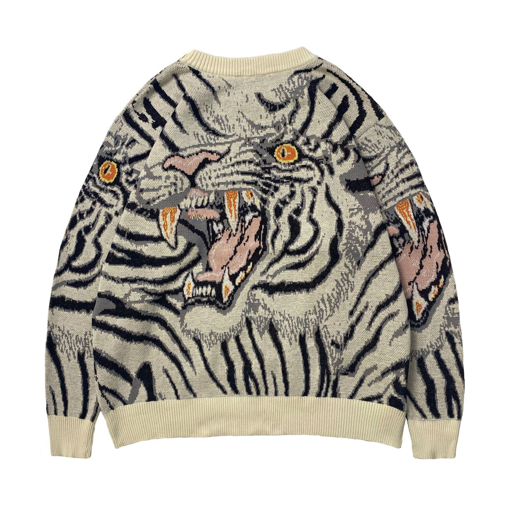 Kapital Sweater Vintage Jacquard Tiger Totem Knitted round Neck Japanese-Style Retro Knitted Pullover Sweater