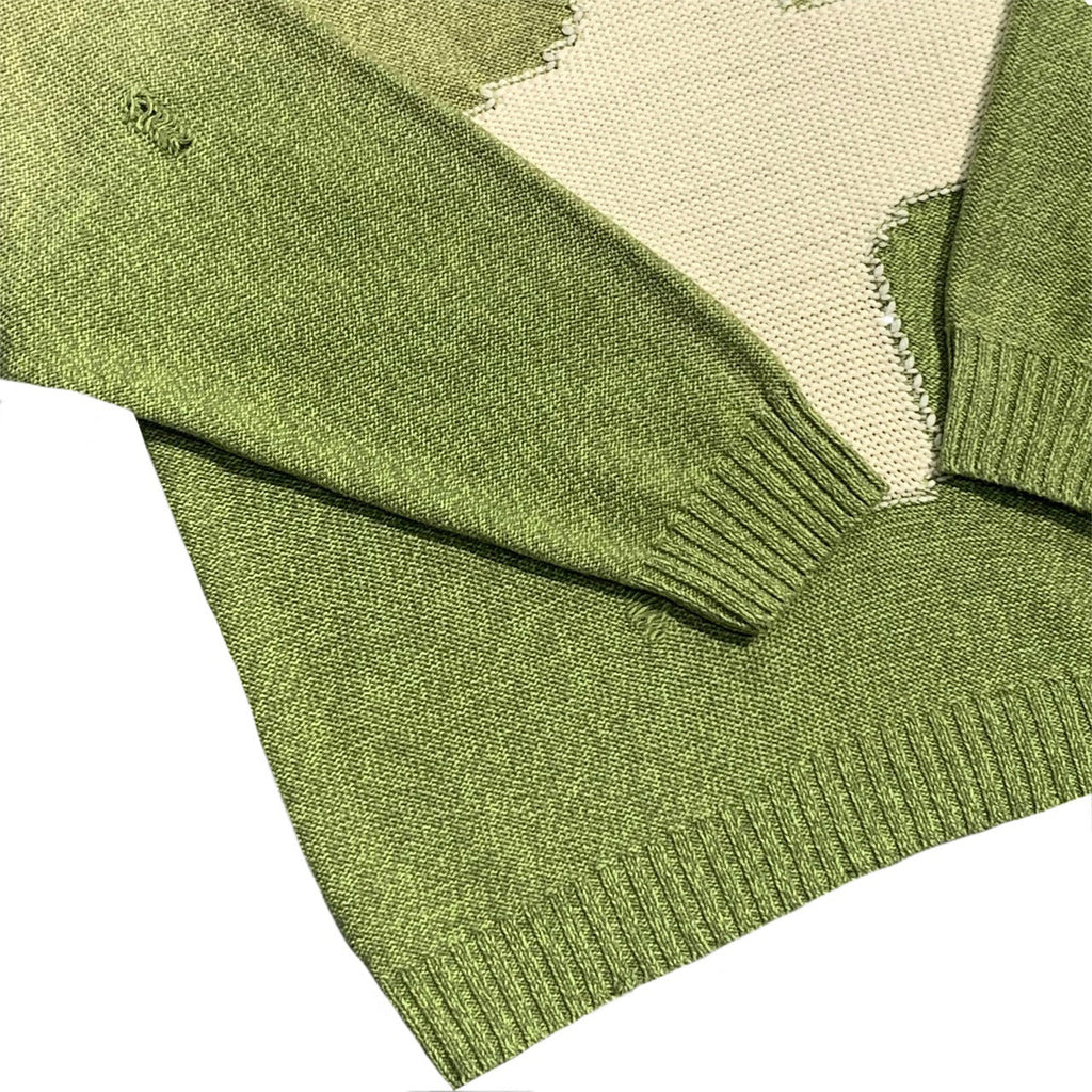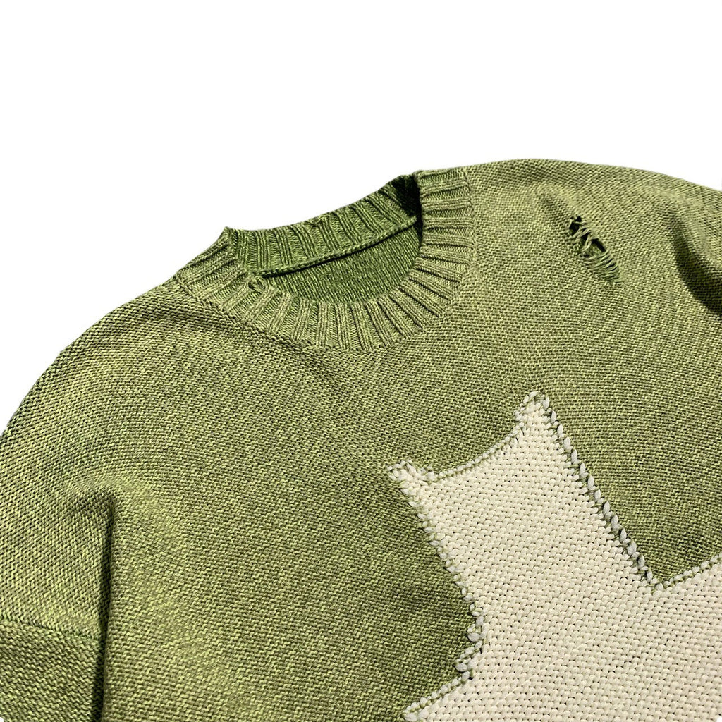 Kapital Sweater Vintage Hida and Macro Cross Ripped round Neck Knitted Pullover Long Sleeve Sweater