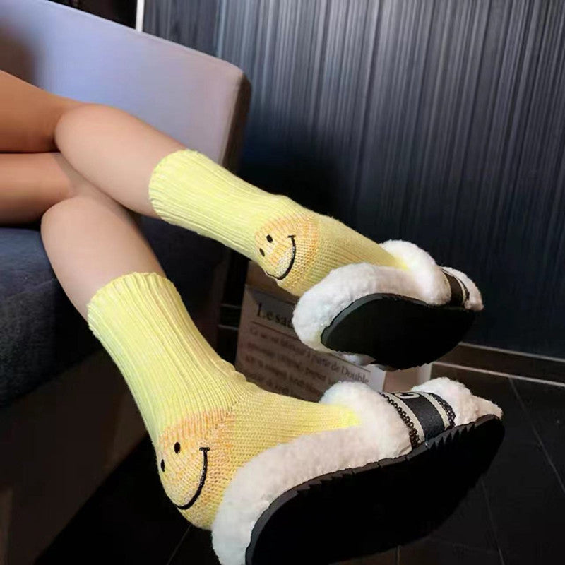 Kapital Sock Pingtian Hehong Wool Thick Needle Smiley Heel Thick Japanese Style Workwear Mixed Color Stripe Socks