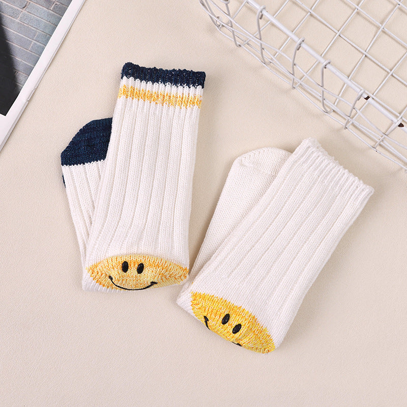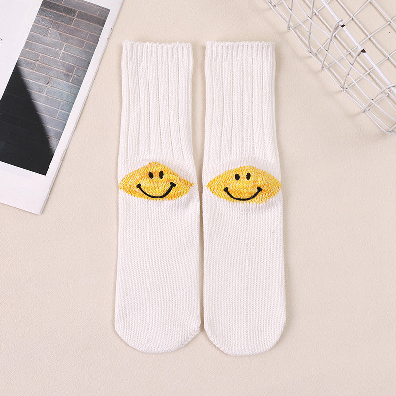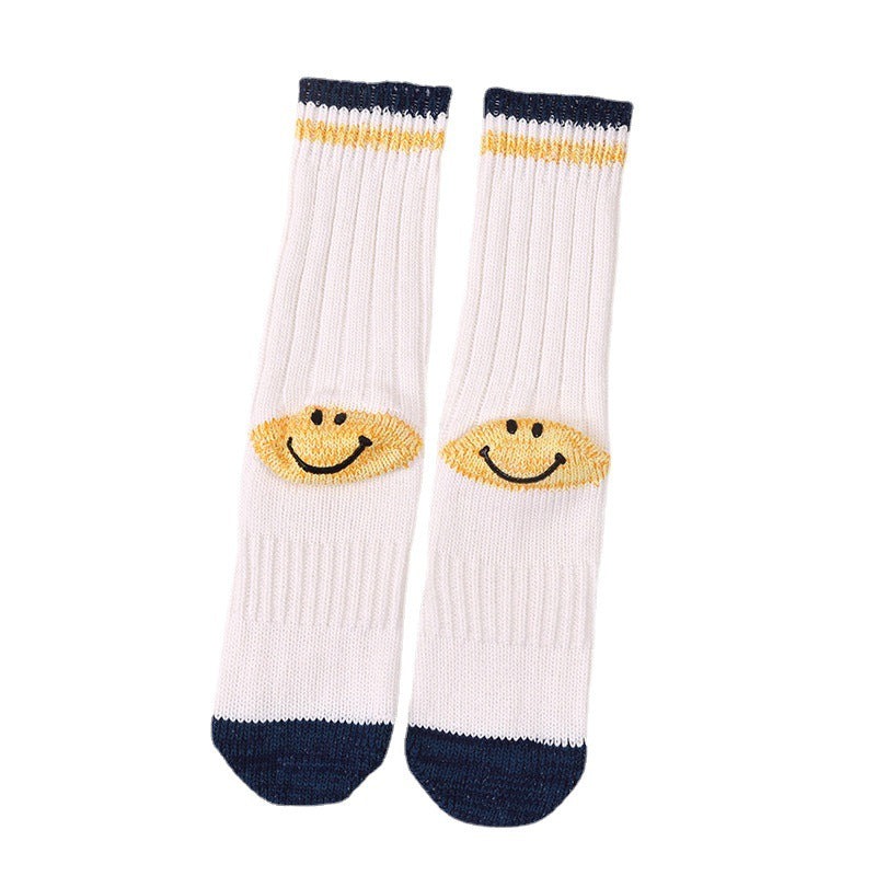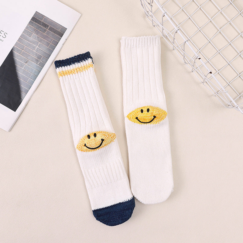 Kapital Sock Hitian Hehong Thick Thread Smiley Face Japanese Ins Trendy Socks Contrast Knitted Long Tube Pile Women