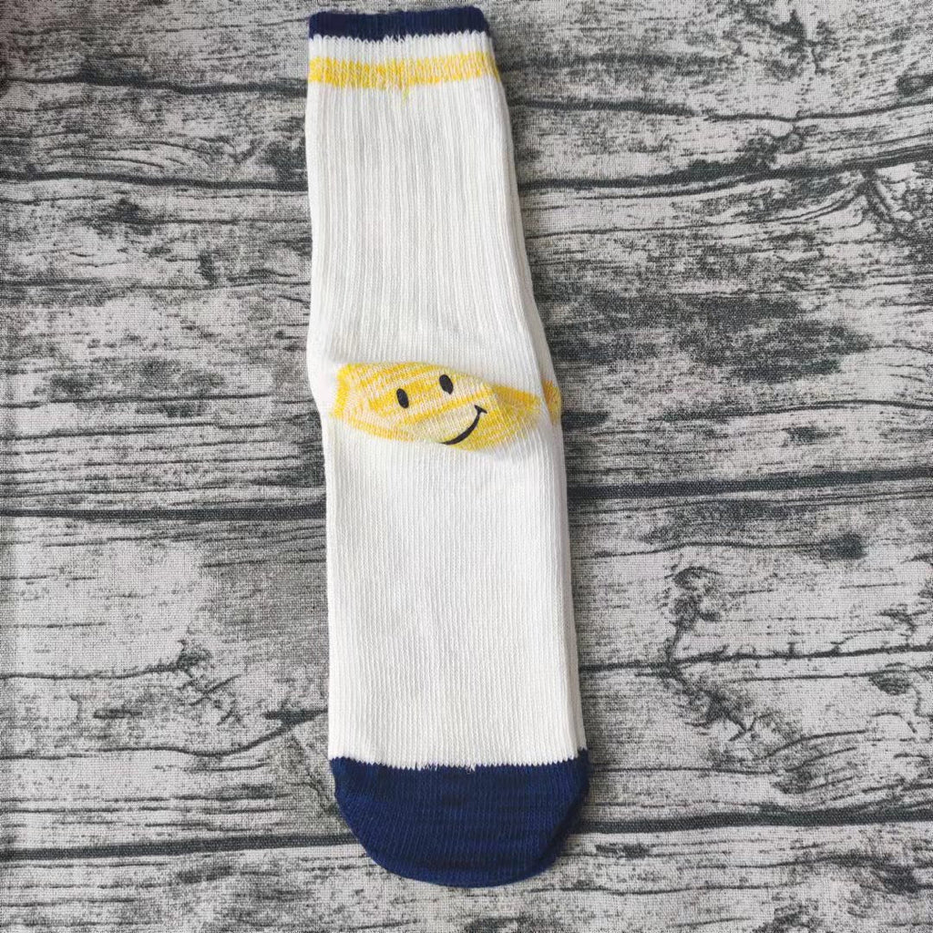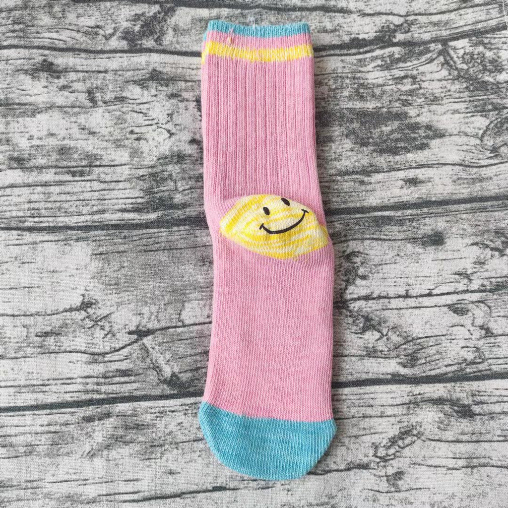 Kapital Sock Pingtian Hehong Geophone Line Double Needle Smiley Face Socks Color Matching Fashion All-Match Ladies
