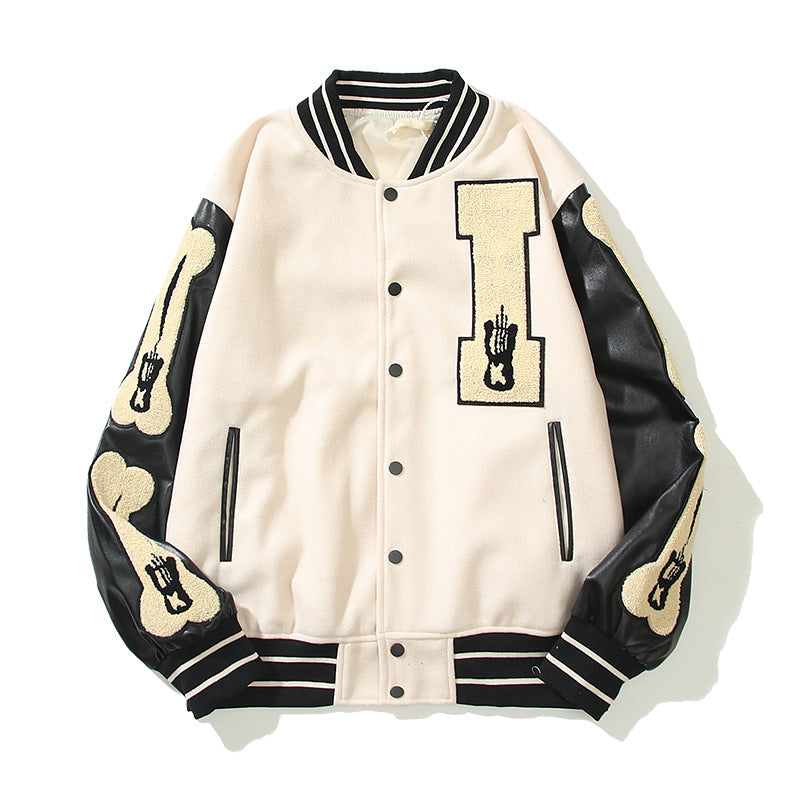 Kapital Jack Hitian Hehong Leather Sleeve Stitching Towel Embroidered Bone Baseball Uniform Jacket Coat