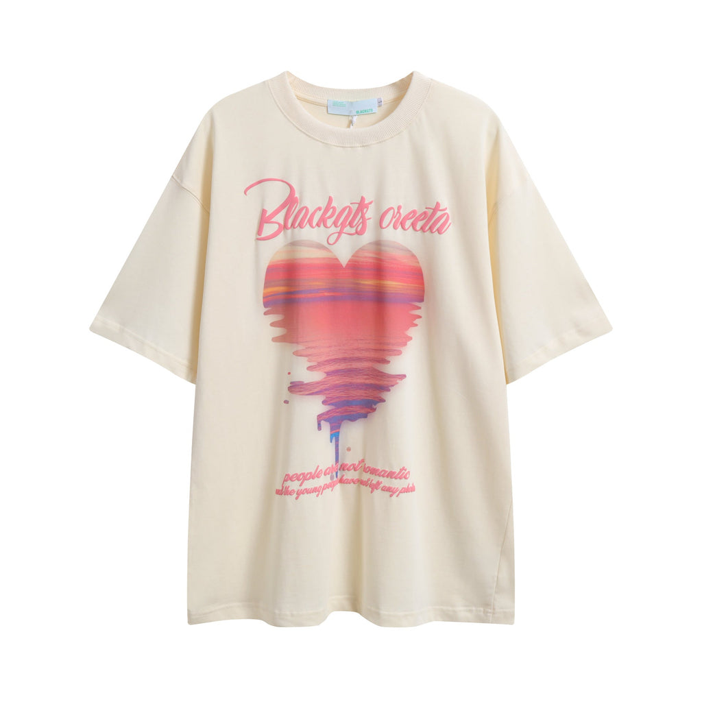 After Prom Shirt Summer Vintage Print Short Sleeves T-shirt Hong Kong Style Loose All-Match Couple