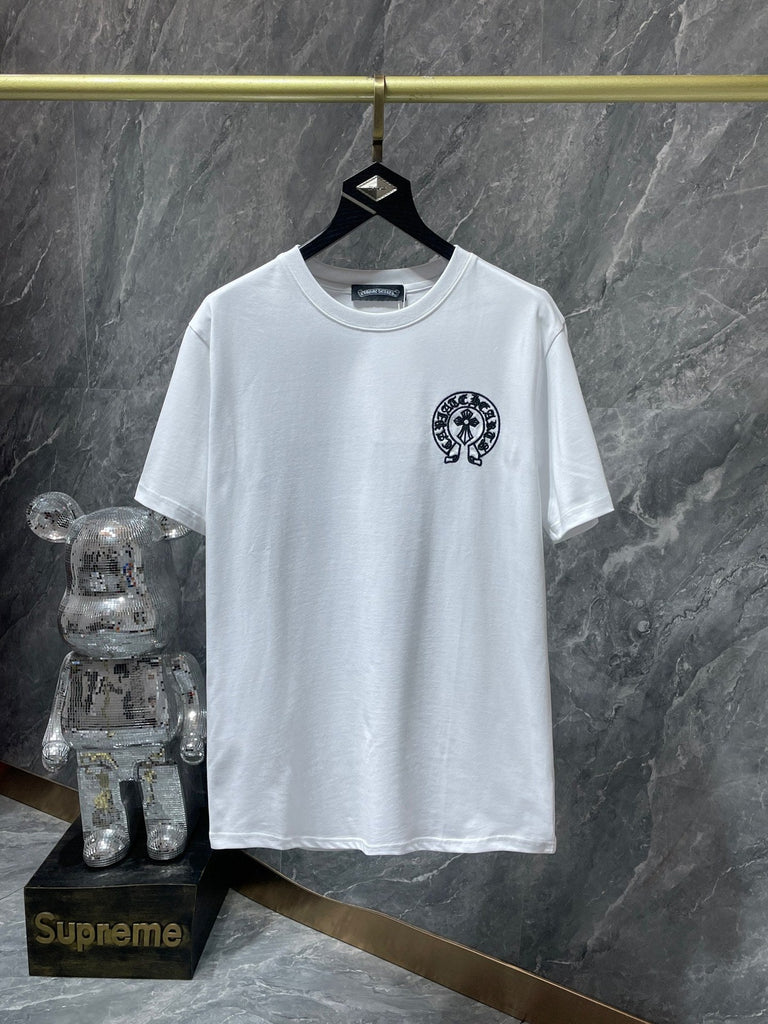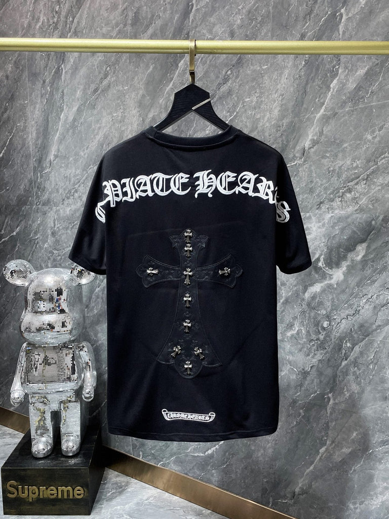 CHH Chrome Hearts T Shirts Letter Embroidered Leather Patchwork Short Sleeve T-shirt