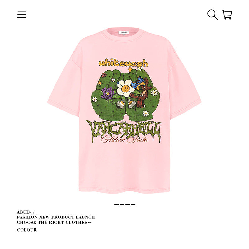 American vintage street T-shirt pure cotton men's and women's summer loose
