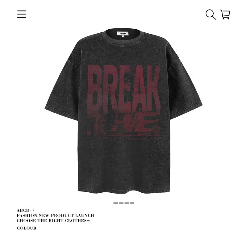 American vintage street T-shirt pure cotton men's and women's summer loose