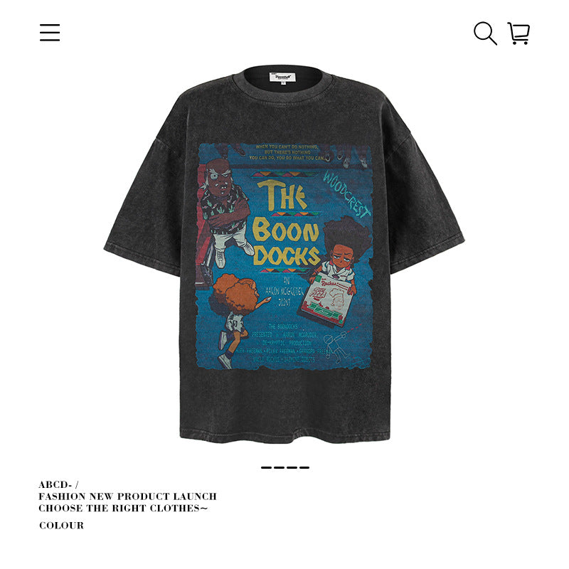 American vintage street T-shirt pure cotton men's and women's summer loose