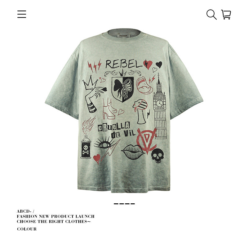 American vintage street T-shirt pure cotton men's and women's summer loose