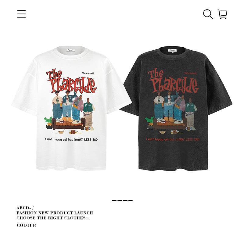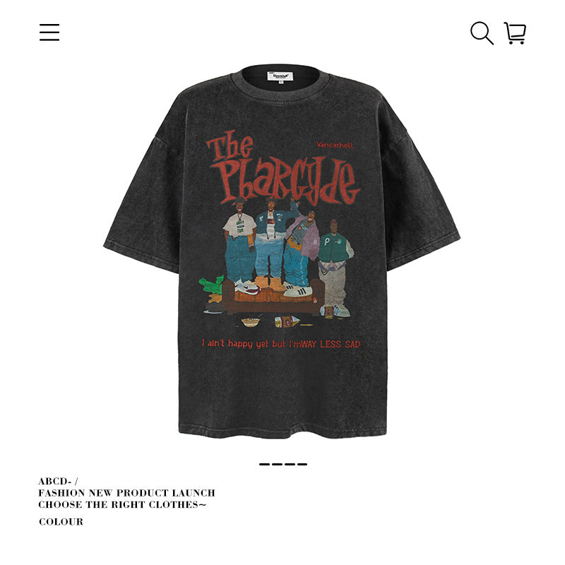American vintage street T-shirt pure cotton men's and women's summer loose